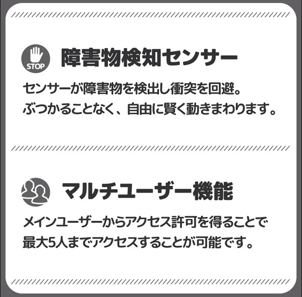センサーが障害物を検出し衝突を回避。ぶつかることなく自由に移動が可能。